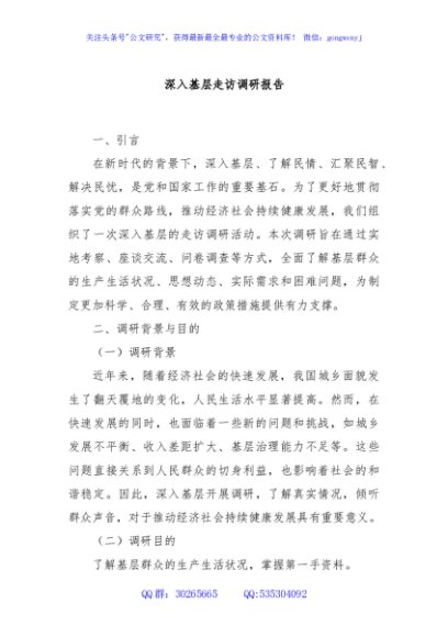 / 深入基层走访调研报告