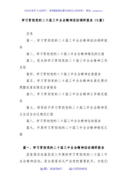 / (9篇)学习贯彻党的二十届三中全会精神活动调研报告