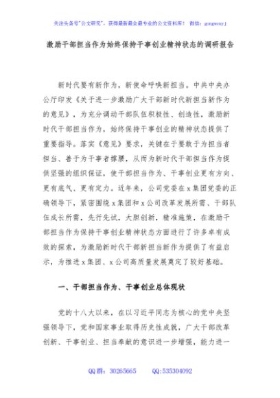 / 激励干部担当作为始终保持干事创业精神状态的调研报告