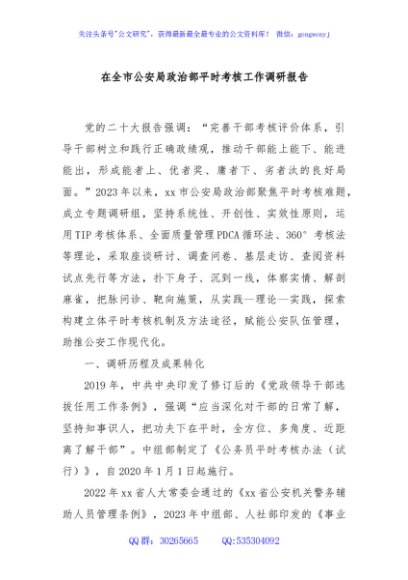 / 在全市公安局政治部平时考核工作调研报告