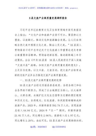 / X县文旅产业高质量发展调研报告