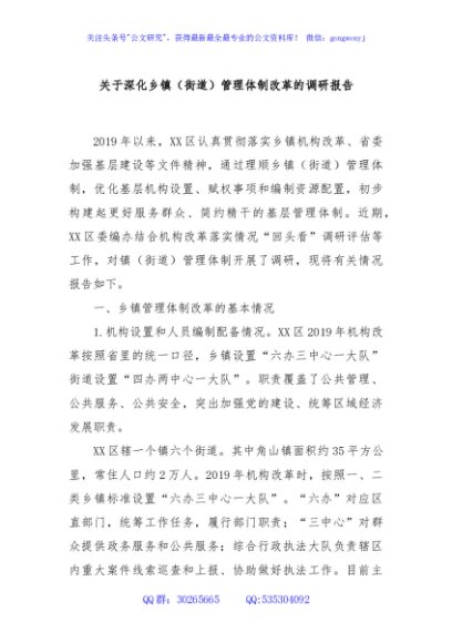 / 关于深化乡镇(街道)管理体制改革的调研报告