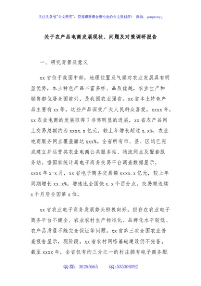 / 关于农产品电商发展现状、问题及对策调研报告