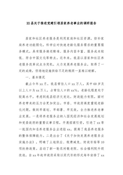 / XX县关于推进党建引领居家养老事业的调研报告