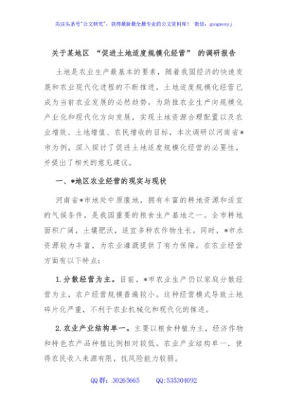 / 关于某地区 “促进土地适度规模化经营” 的调研报告