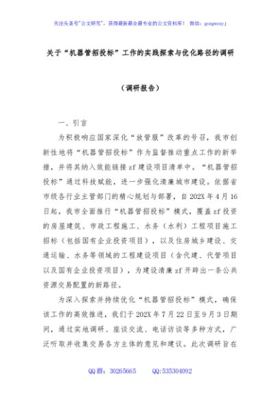关于“机器管招投标”工作的实践探索与优化路径的调研(调研报告)