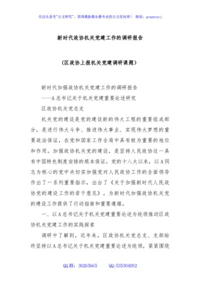 / 新时代政协机关党建工作的调研报告(区政协上报机关党建调研课题)