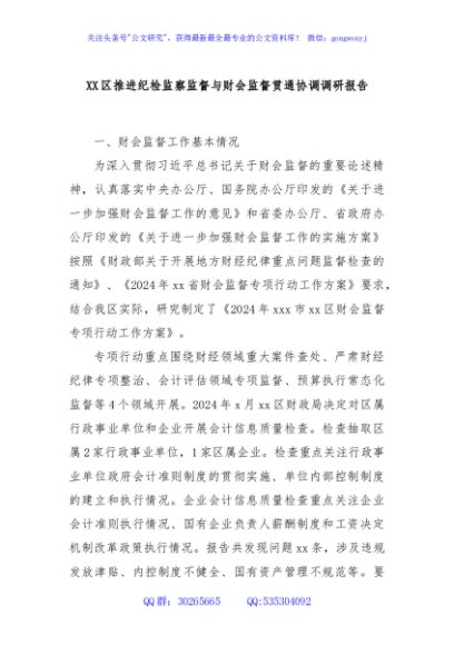 / XX区推进纪检监察监督与财会监督贯通协调调研报告