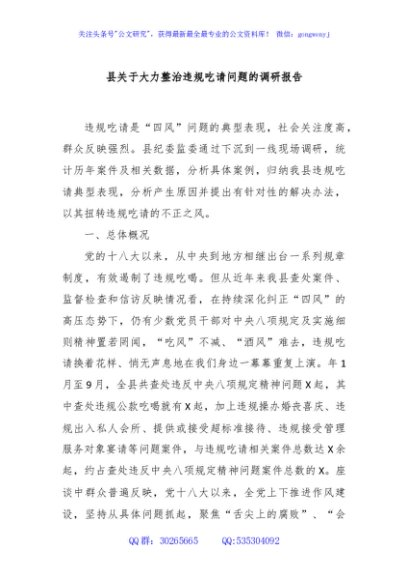 / 县关于大力整治违规吃请问题的调研报告