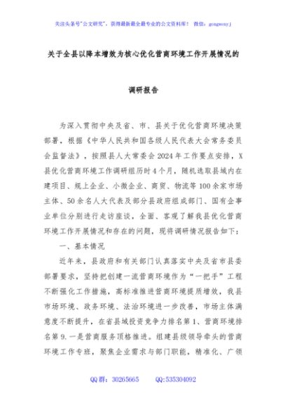 / 关于全县以降本增效为核心优化营商环境工作开展情况的调研报告