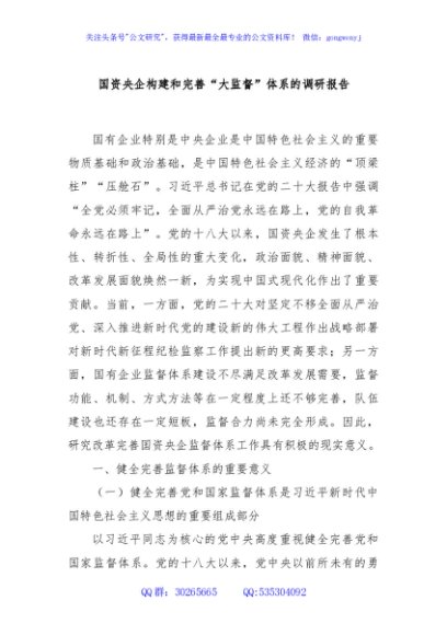 / 国资央企构建和完善“大监督”体系的调研报告