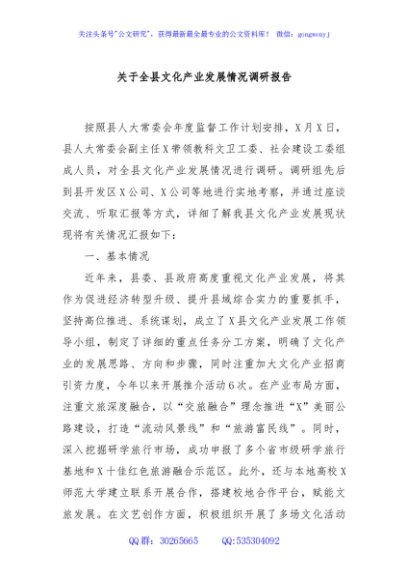 / 关于全县文化产业发展情况调研报告