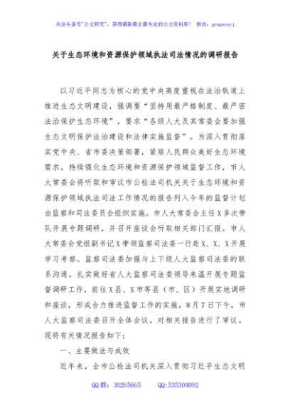 / 关于生态环境和资源保护领域执法司法情况的调研报告