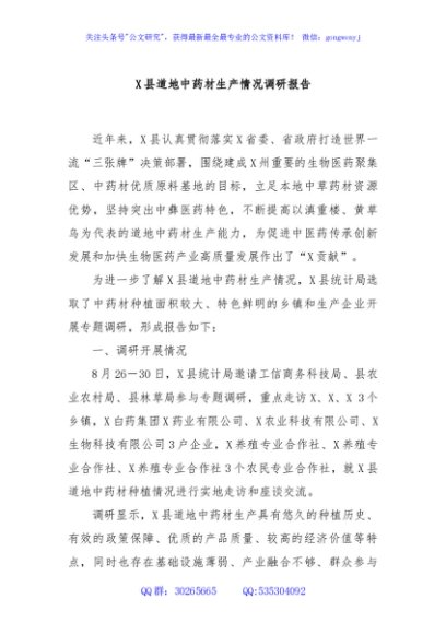 / X县道地中药材生产情况调研报告