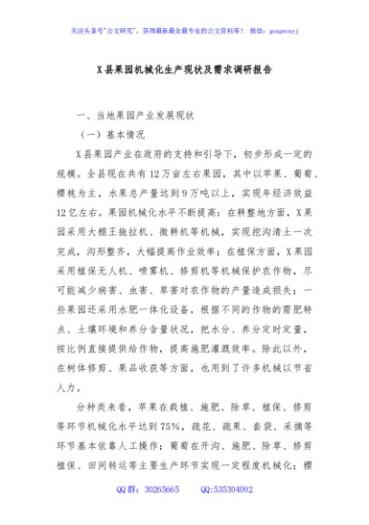 / X县果园机械化生产现状及需求调研报告