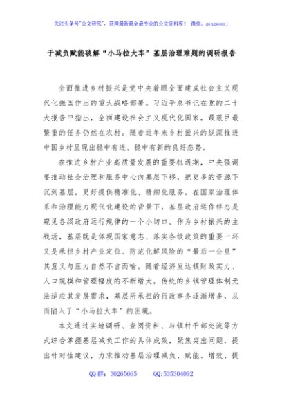 / 于减负赋能破解“小马拉大车”基层治理难题的调研报告