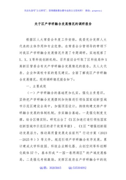 未生成预览图,长按二维码添加 关于区产学研融合发展情况的调研报告 - 公文研究