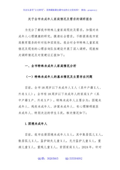/ 关于全市未成年人家庭情况及需求的调研报告