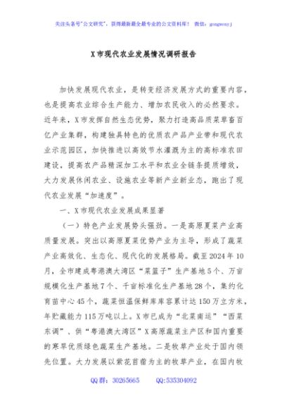 / X市现代农业发展情况调研报告