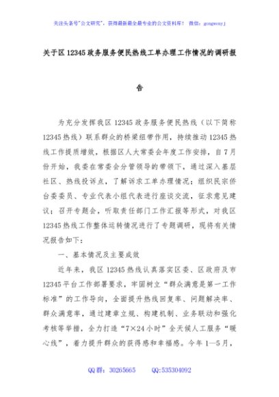 / 关于区12345政务服务便民热线工单办理工作情况的调研报告