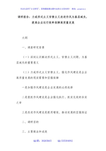 / 调研报告:力戒形式主义官僚主义改进作风为基层减负,提高企业运行效率保障高质量发展