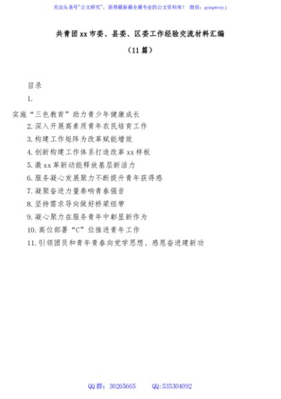 / (11篇)共青团市委委区委工作经验交流材料汇编
