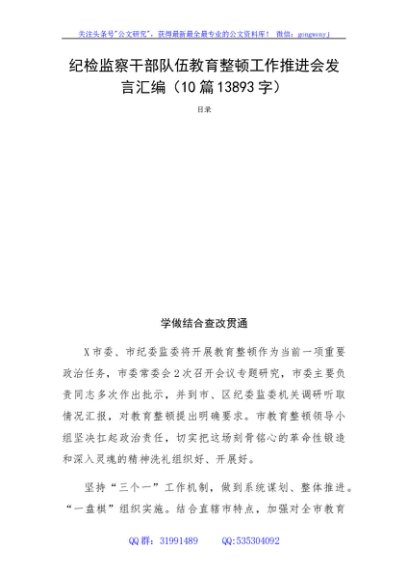 / 纪检监察干部队伍教育整顿工作推进会发言10篇