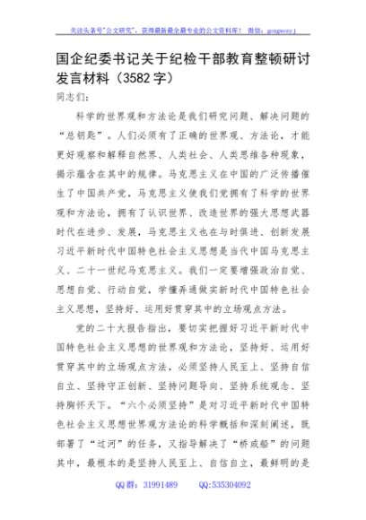 / 国企纪委书记关于纪检干部教育整顿研讨发言材料
