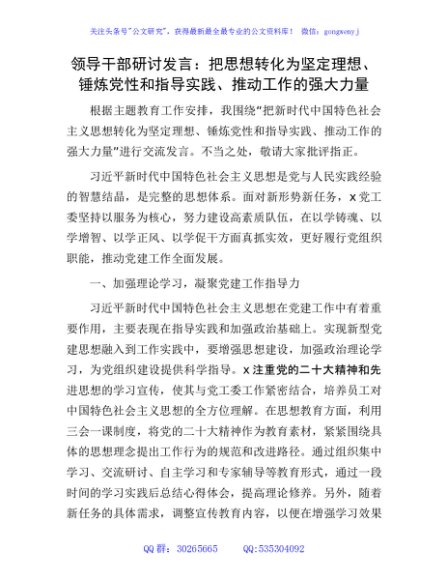 / 主题教育研讨发言:把思想转化为推动工作的强大力量