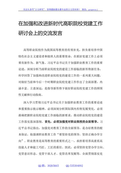/ 在加强和改进新时代高职院校党建工作研讨会上的交流发言