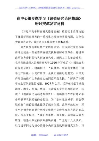 在中心组专题学习《调查研究论述摘编》研讨交流发言材料