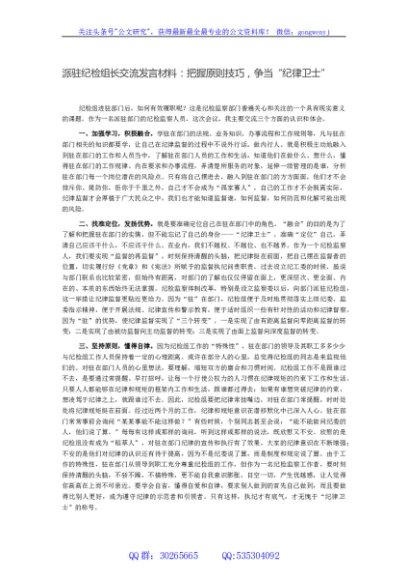 / 派驻纪检组长交流发言材料:把握原则技巧,争当“纪律卫士”