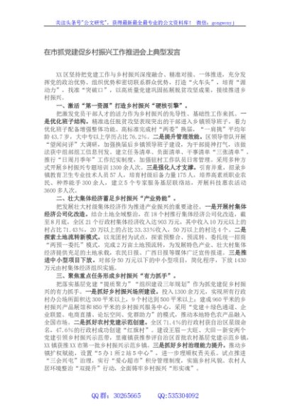 / 在市抓党建促乡村振兴工作推进会上典型发言