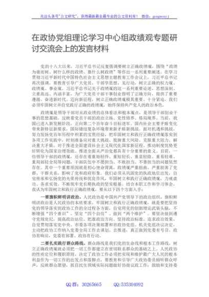 / 在政协党组理论学习中心组政绩观专题研讨交流会上的发言材料