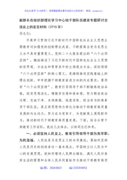 / 副部长在组织部理论学习中心组干部队伍建设专题研讨交流会上的发言材料