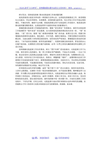 / 研讨发言:坚持底线思维 推动纪检监察工作高质量发展