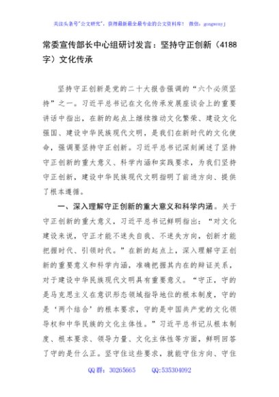 / 常委宣传部长中心组研讨发言:坚持守正创新
