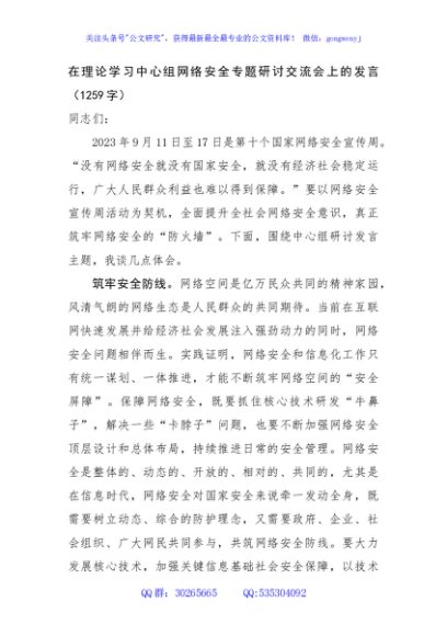 / 在理论学习中心组网络安全专题研讨交流会上的发言
