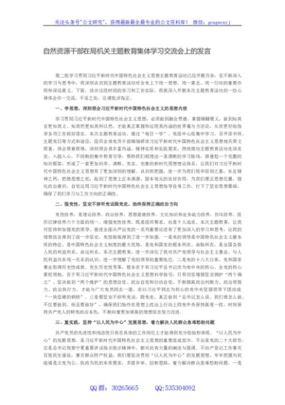 / 自然资源干部在局机关主题教育集体学习交流会上的发言