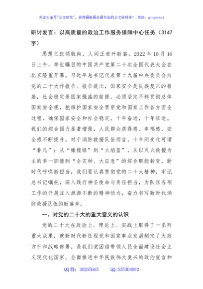/ 研讨发言:以高质量的政治工作服务保障中心任务