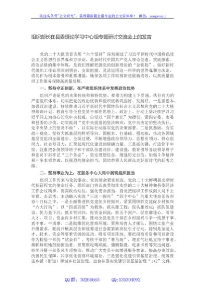 / 组织部长在县委理论学习中心组专题研讨交流会上的发言