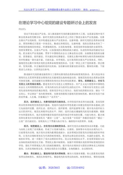 / 在理论学习中心组党的建设专题研讨会上的发言
