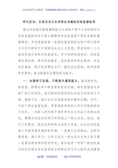 / 研讨发言:打造自身正自身硬自身廉的纪检监察铁军