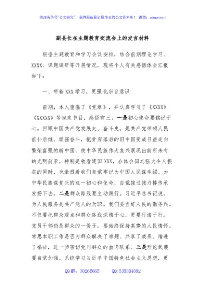 / 副县长在主题教育交流会上的发言材料 (3)