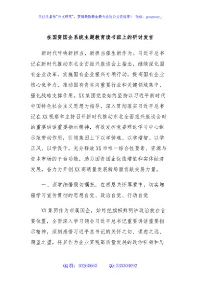 / 在国资国企系统主题教育读书班上的研讨发言