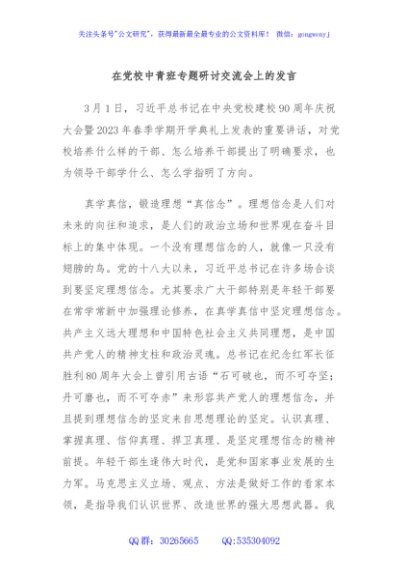 / 在党校中青班专题研讨交流会上的发言