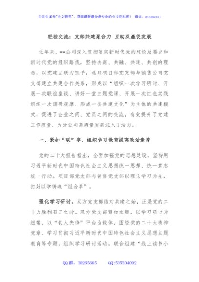 / 经验交流:支部共建聚合力 互助双赢促发展