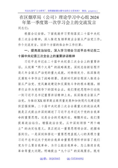 / 烟草系统中心组学习会(中央纪委三次全会精神、从严治党)交流发言