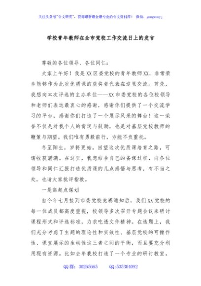 / 学校青年教师在全市党校工作交流日上的发言