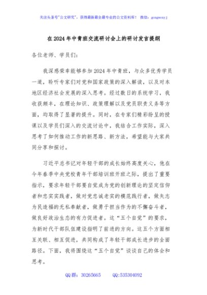 / 在2024年中青班交流研讨会上的研讨发言提纲